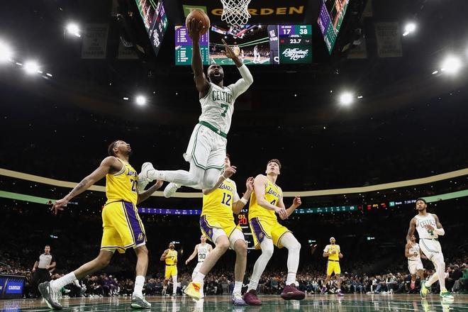 湖人背靠背客场作战凯尔特人,东契奇、詹姆斯、斯玛特都打不了。这场比赛的首节,主场作战的凯尔特人就火力全开,靠着神准的三分球在首节就取得了22分的领先。第二节开局,凯尔特人延续了第一节的三分球手感一度将分差拉开到29分;不过随后湖人这边进攻端有所改善,而凯尔特人三分球命中率也回落了,因此分差没有被继续拉开,反而缩小了一些,半场比赛结束,湖人46-69落后23分。